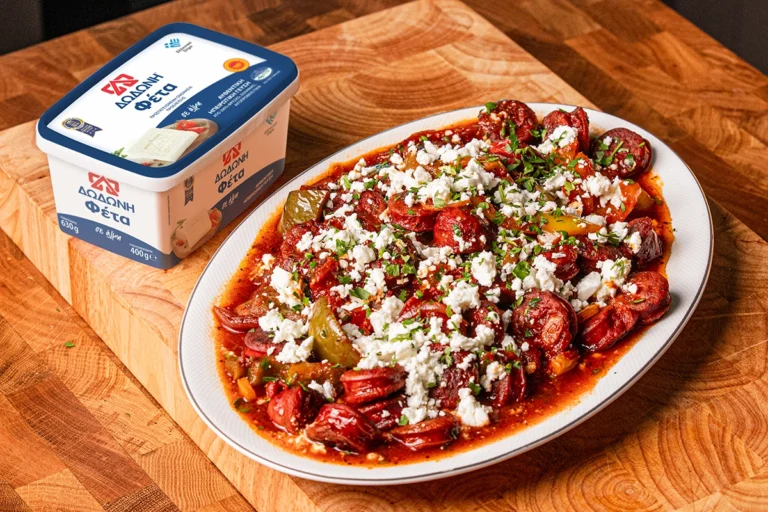 Φέτα Τυλιγμένη σε Κανταΐφι με Σάλτσα Φιστικιού Αιγίνης