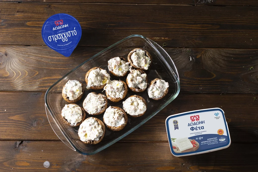 μανιτάρια γεμιστά με φέτα & γιαούρτι