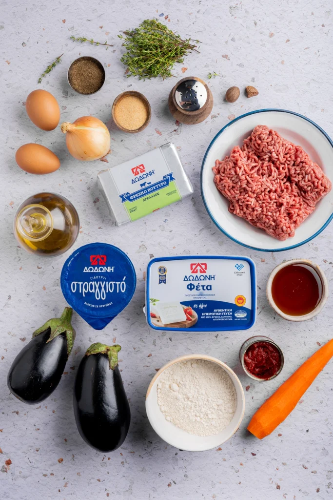 Στο τέλος, προσθέτουμε και την τριμμένη φέτα. Στρώνουμε την μπεσαμέλ πάνω από τις μελιτζάνες και πασπαλίζουμε με λίγο ακόμα μοσχοκάρυδο και ψιλοκομμένο μαϊντανό.