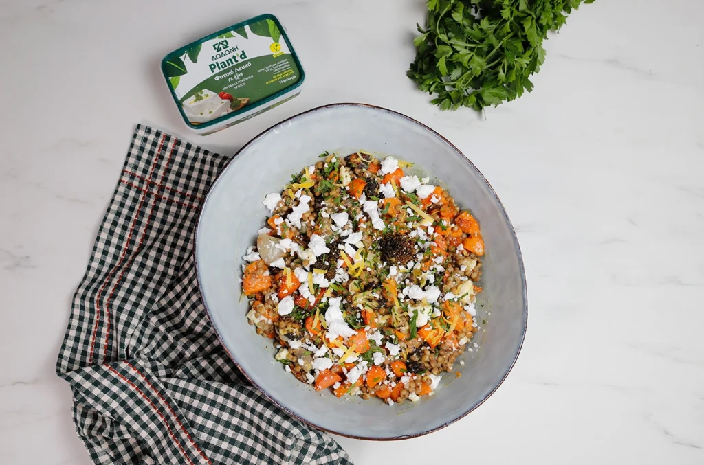 Σαλάτα με φακές και ψητά λαχανικά