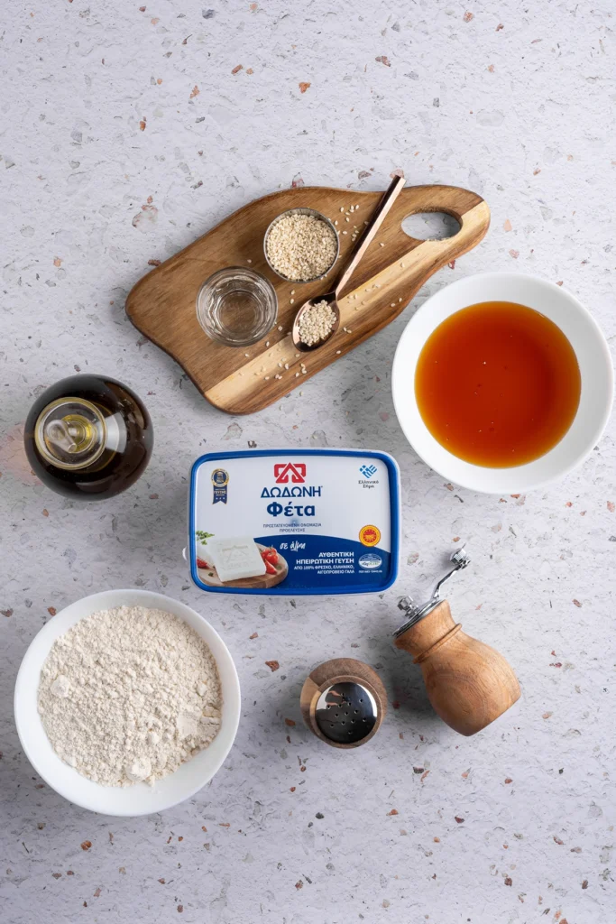 • Σε λεία επιφάνεια ανοίγουμε με τον πλάστη κάθε ζυμαράκι. Βάζουμε λίγη Φέτα ΔΩΔΩΝΗ στο κέντρο και κλείνουμε γύρω γύρω με τη ζύμη ώστε να καλύψουμε και να εγκλωβίσουμε το τυρί. Το ανοίγουμε ξανά με τον πλάστη, προσέχοντας να μην ανοίξει το ζυμαράκι και βγει το τυρί. Επαναλαμβάνουμε την ίδια διαδικασία μέχρι να τελειώσουν τα υλικά.