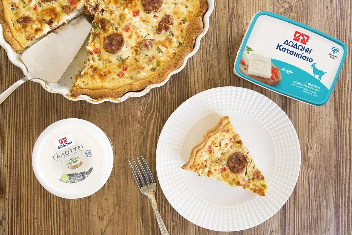 τάρτα με πιπεριές λουκάνικο και γαλοτύρι